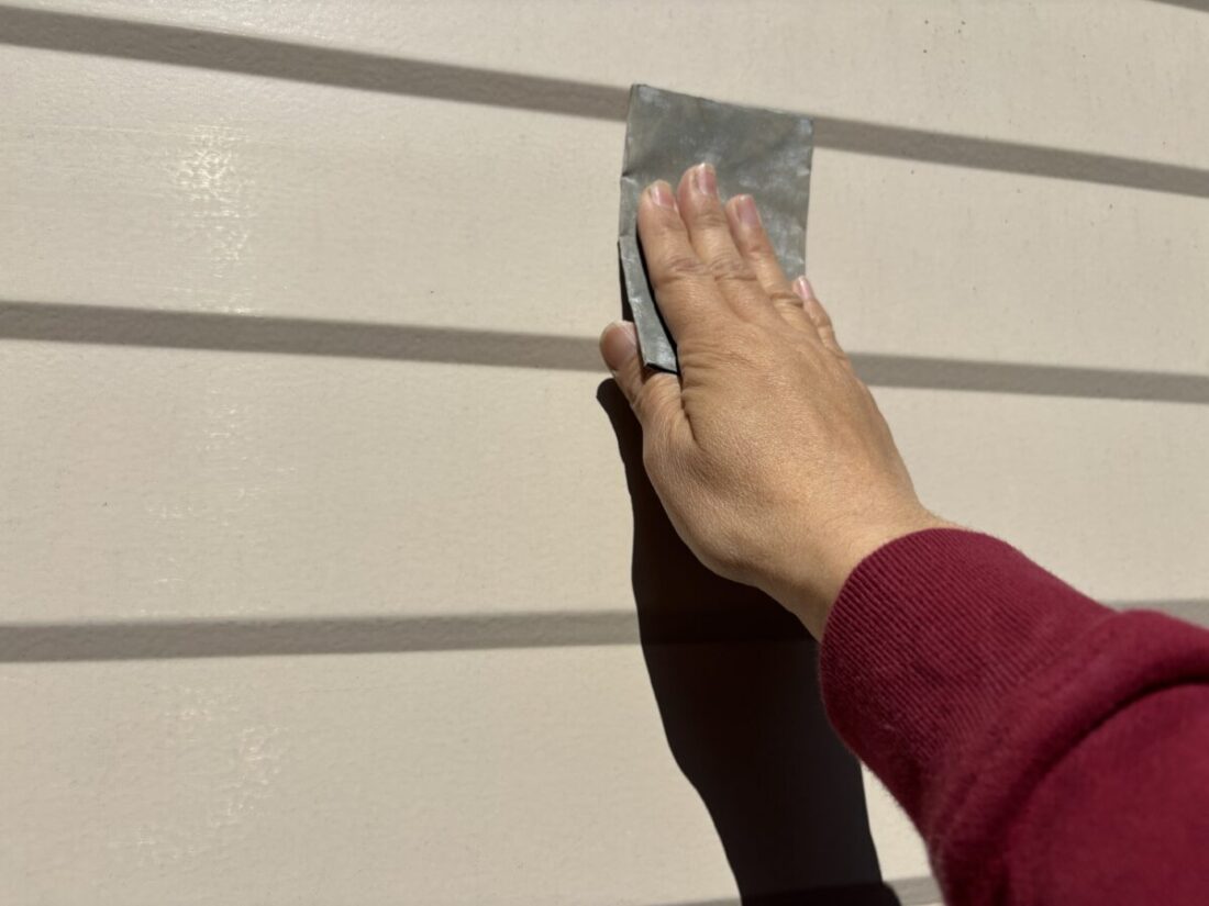 屋根塗装工事中に外壁のチョーキングやコーキングの肉やせの劣化がみられたため、足場もかけていることから